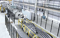 يتم استخدام محمّل البكرة الذي يتم ترخيته هوائياً في حين يتم تثبيته أوتوماتيكياً في آلة تصنيع الكابلات هذه . تحميل وتفريغ البكرة سهلٌ ومريح .