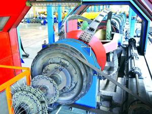 3. يتم استخدام محمّل البكرة الذي يتم ترخيته هوائياً في حين يتم تثبيته أوتوماتيكياً في آلة تصنيع الكابلات هذه . تحميل وتفريغ البكرة سهلٌ ومريح .