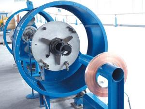 آلة ترديع الكابلات هذه تستخدم بشكل رئيسي لتدريع شريط النحاس للطبقة المعزولة لكابل الطاقة .